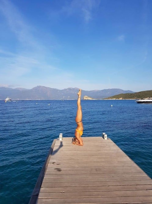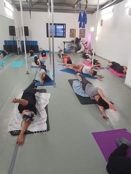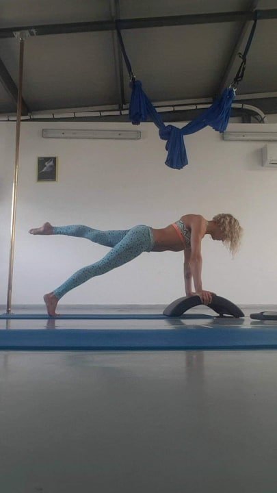 Elle est récemment formée en Fly Yoga (yoga aérien).